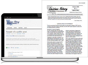 Louisiana Notary reviews court decisions, legislation, and state agency policies for changes important to notaries. Additionally, most issues contain answers to readers’ questions. Common notarial forms presented in a reproducible format are frequently included, in addition to general articles of interest to all Louisiana notaries.